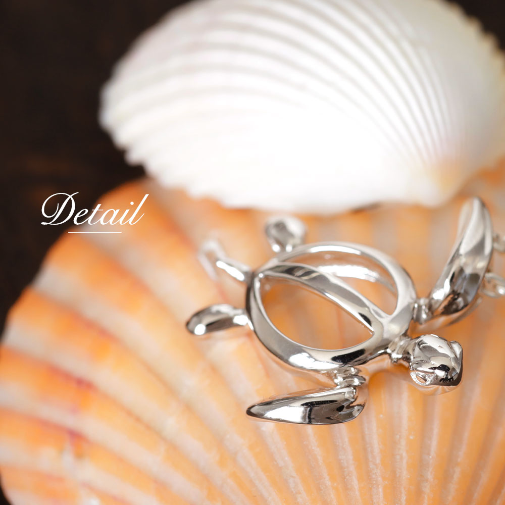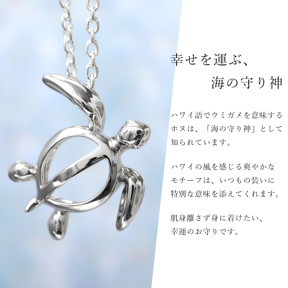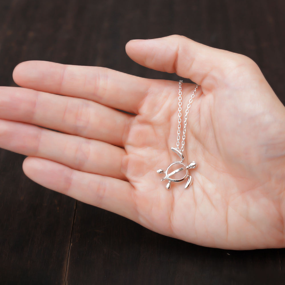 存在感のある大きさとキュートな目元が魅力のホヌ(ウミガメ)ネックレス。肌身離さず身に着けたい幸運のお守りです。