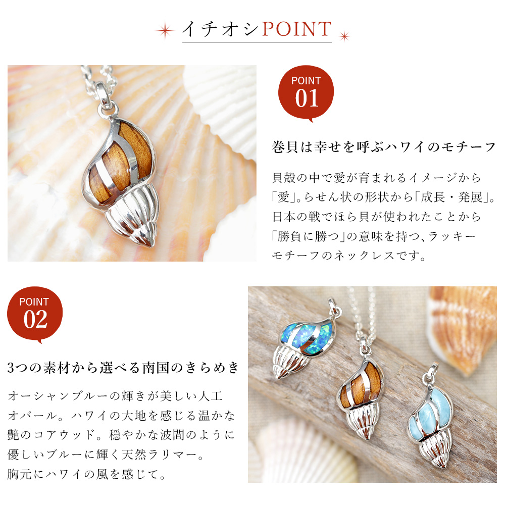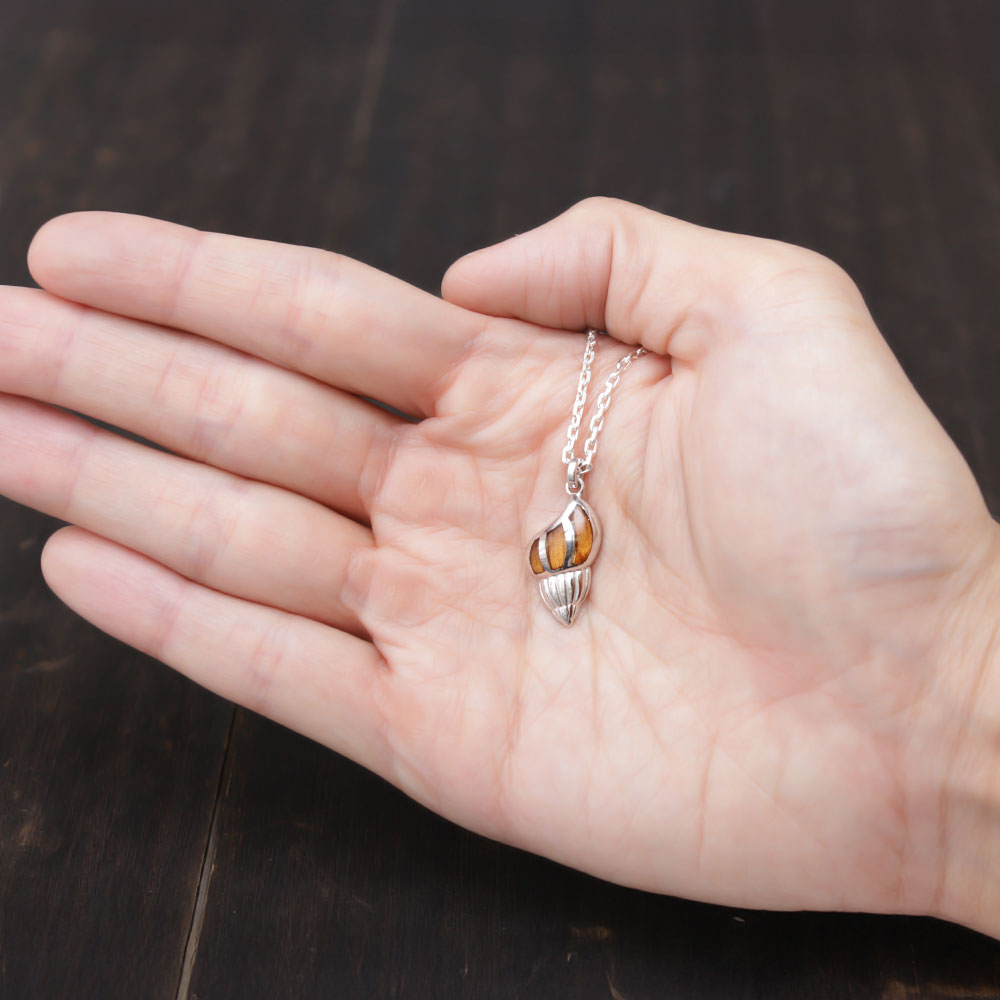 「愛」や「成長・発展」を意味する巻貝モチーフのペンダント。