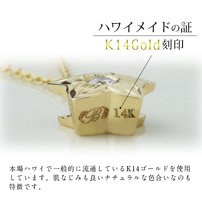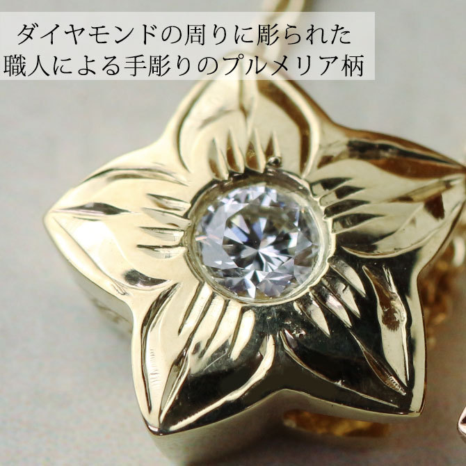 ハワイアンジュエリー 一粒ダイヤモンド プルメリア ネックレス カットあずきチェーン太さ0.9mm