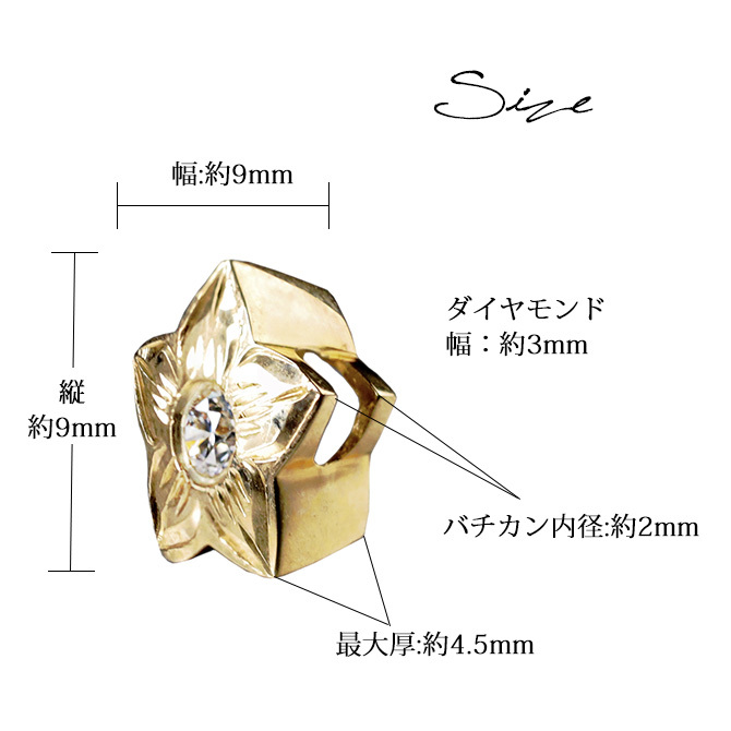寸法:【プルメリア】横約9mm×縦約9mm/最大厚約4.5mm/バチカン内径約2mm