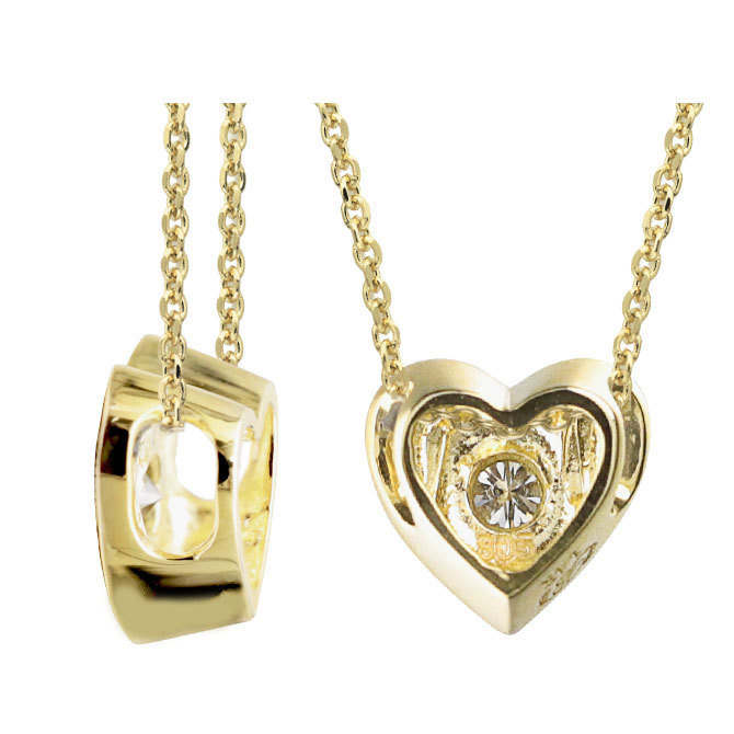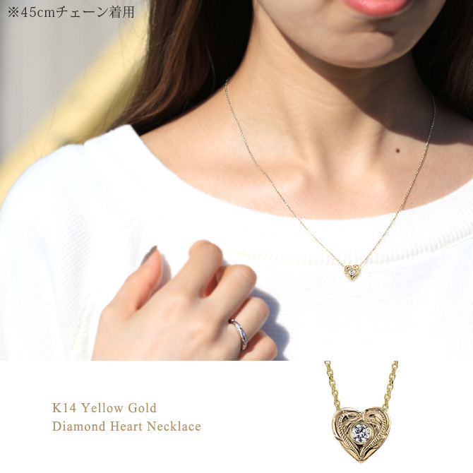 ハワイアンジュエリー 一粒ダイヤモンド ハート ネックレス カットあずきチェーン太さ0.9mm
