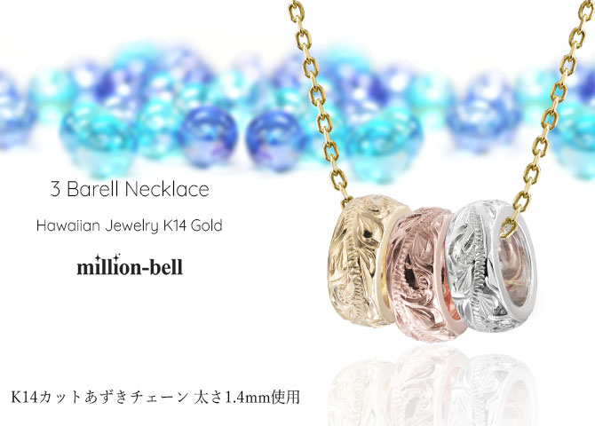 ハワイアンジュエリー ゴールド バレル ペアネックレス K14カットあずきチェーン太さ1.4mm