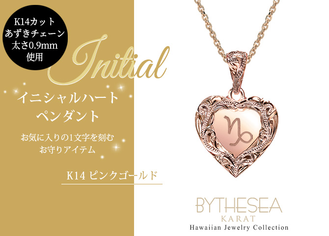 ハワイアンジュエリー イニシャル ハート ネックレス カットあずきチェーン太さ0.9mm