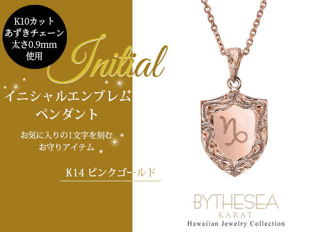 ハワイアンジュエリー イニシャル エンブレム ネックレス K10カットあずきチェーン太0.9mm