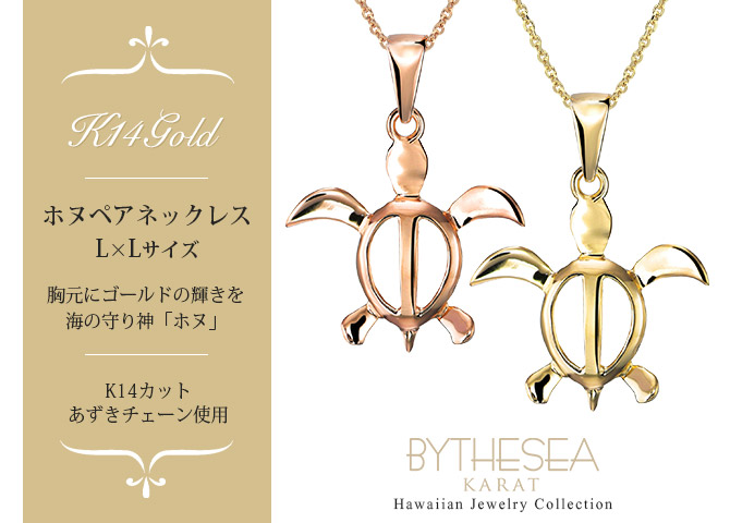 ハワイアンジュエリー ホヌ ペアネックレス カットあずきチェーン太さ0.9mm
