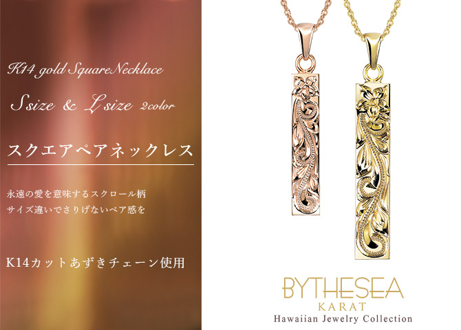 ハワイアンジュエリー スクエア ペアネックレス カットあずきチェーン太さ0.9mm