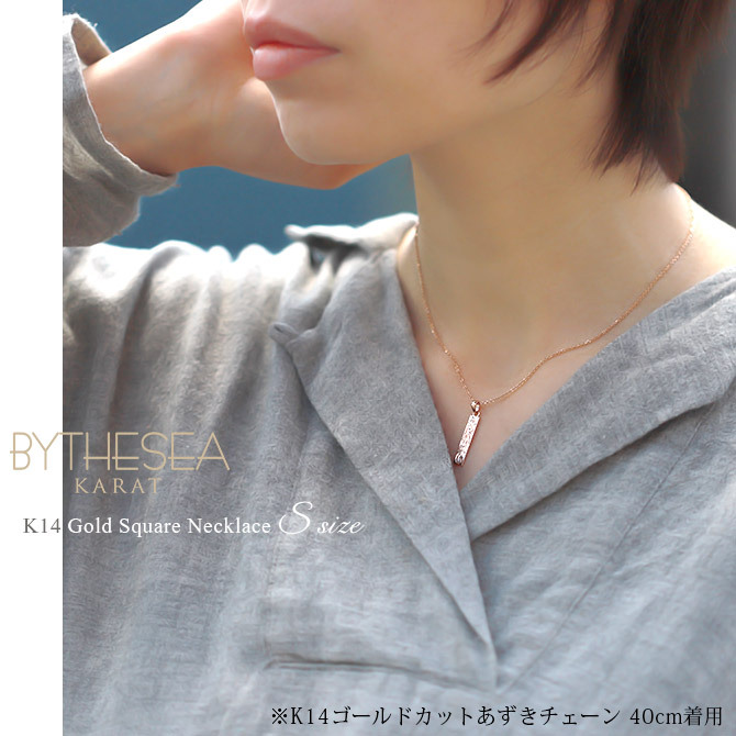 胸元をすっきりと見せてくれるロングスクエアネックレス。シンプルな形が彫りを際立たせます