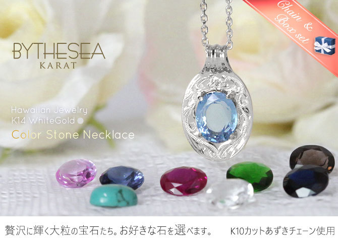 ハワイアンジュエリー 超大粒 カラーストーン ネックレス K10カットあずきチェーン太0.9mm