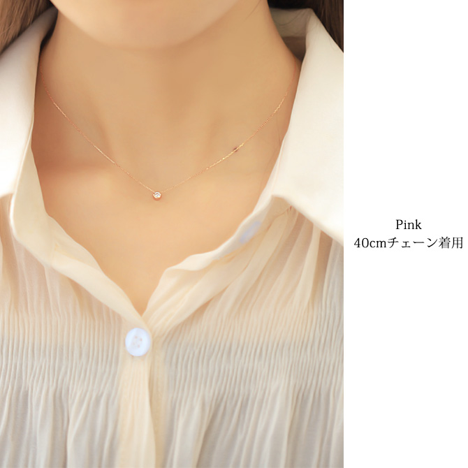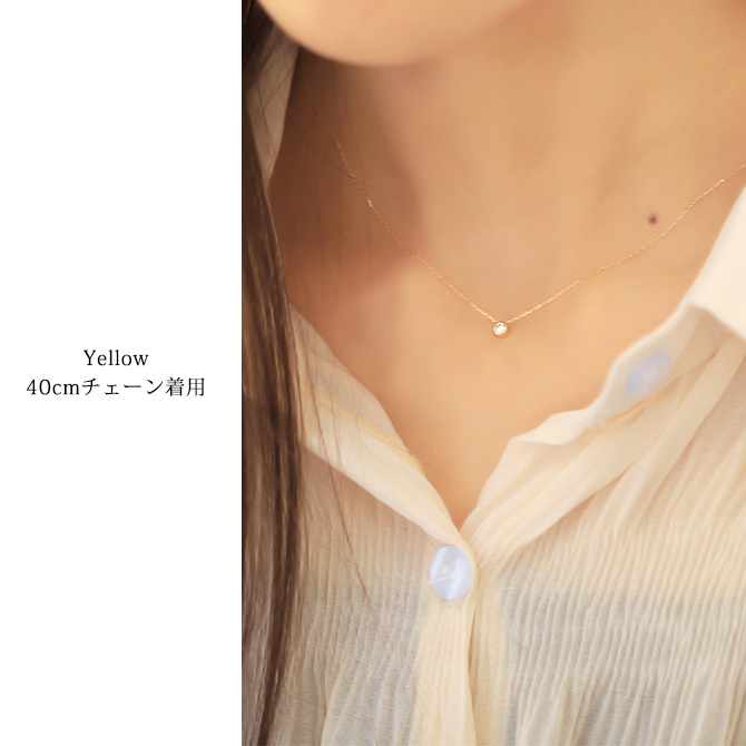 シンプルに一粒ダイヤの輝きを楽しめるネックレス。オンオフ選ばず身に付けられさりげない大人の魅力を引き出します。