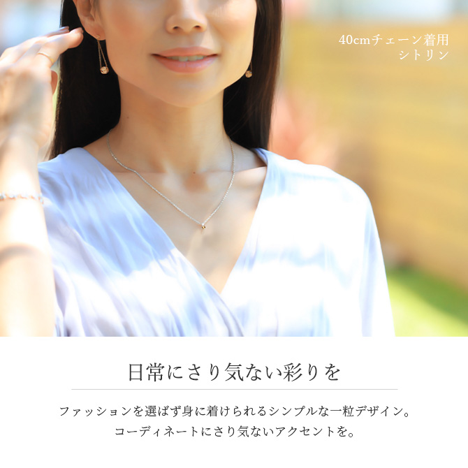 ファッションを選ばず身に着けられるシンプルな一粒デザイン。コーディネイトにさり気ないアクセントを。
