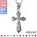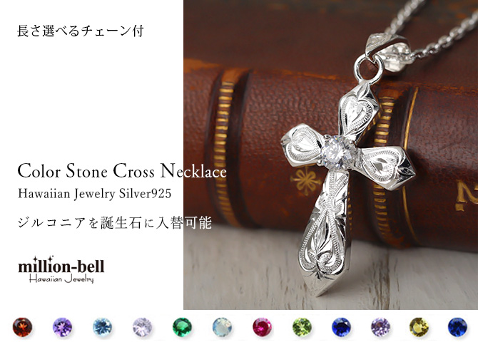 中央ジルコニアをお好きな誕生石に変更可能!。スクロール柄クロスネックレス