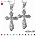 中央ジルコニアをお好きな誕生石に変更可能!。スクロール柄クロスネックレス