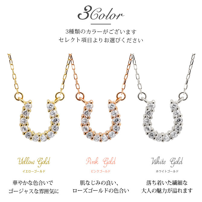 馬蹄モチーフに敷き詰められたダイヤモンドがラグジュアリーな胸元を演出します