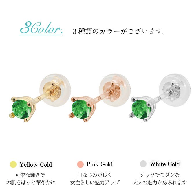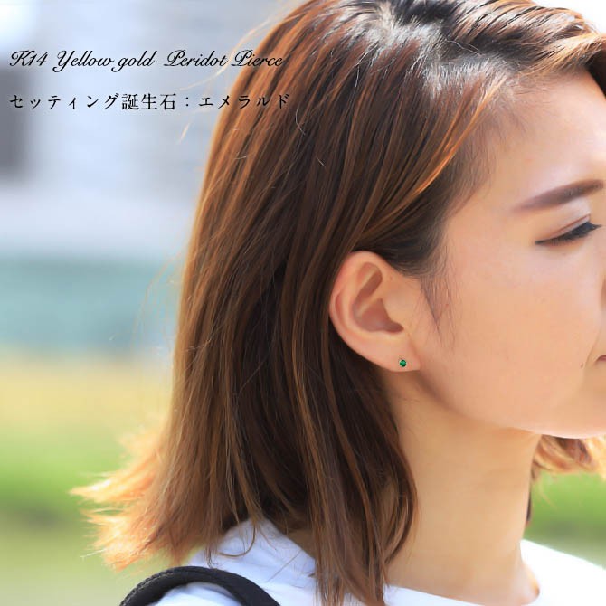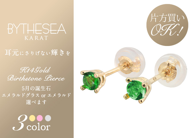 K14ゴールド/エメラルド:3mm(約0.12ct)またはエメラルドグラス