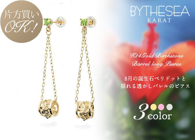 ハワイアンジュエリー 8月誕生石 ペリドット 透かしバレル ロングピアス