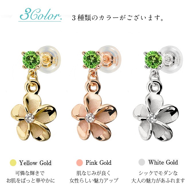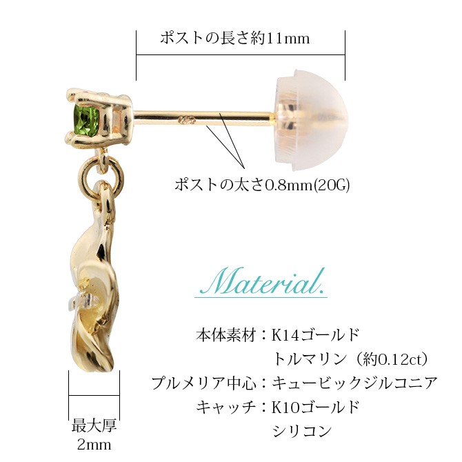 ハワイアンジュエリー 10月誕生石 トルマリン プルメリア ピアス