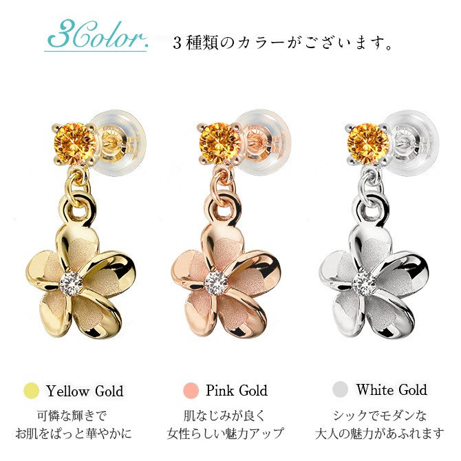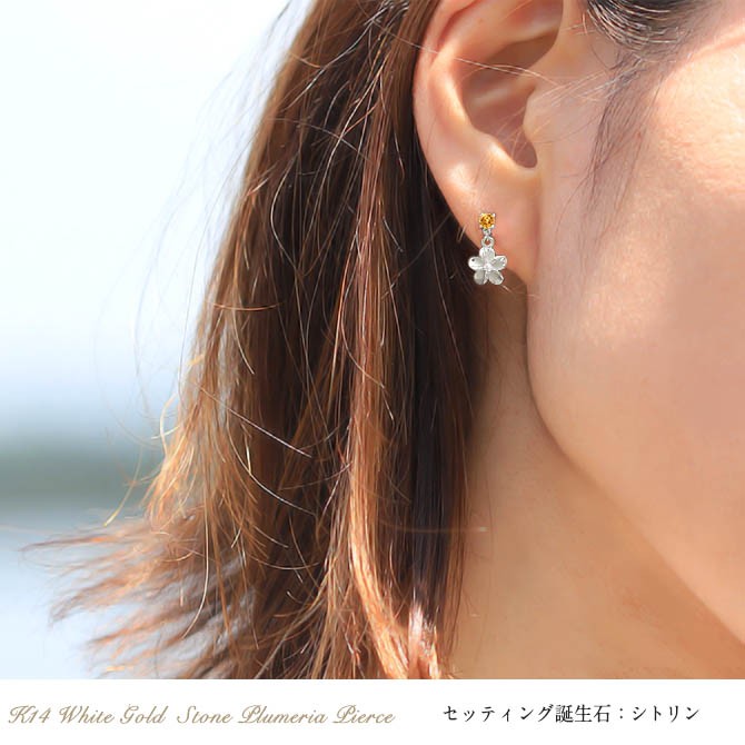 ハワイアンジュエリー 11月誕生石 シトリン プルメリア ピアス