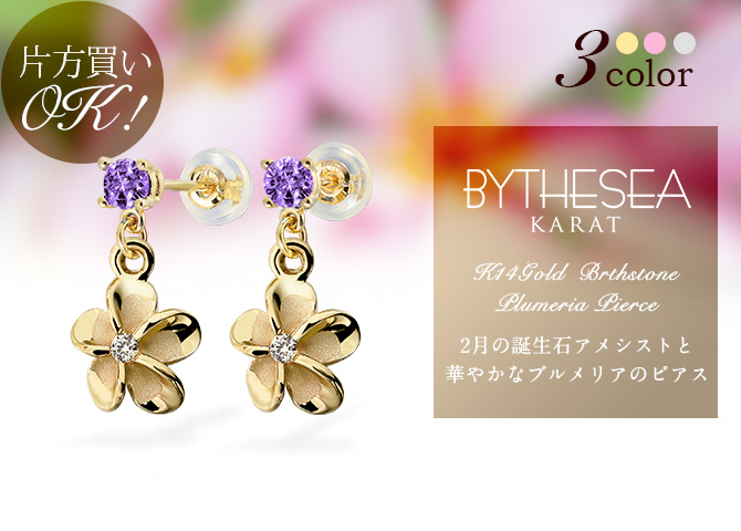ハワイアンジュエリー 2月誕生石 アメシスト プルメリア ピアス