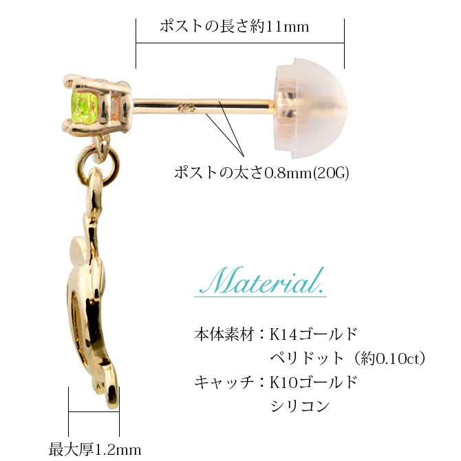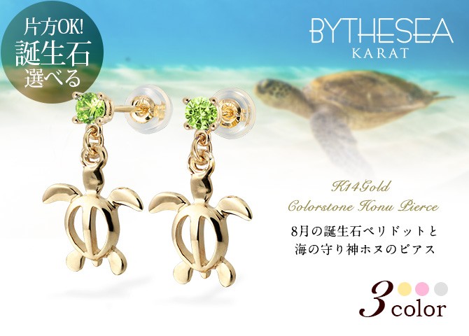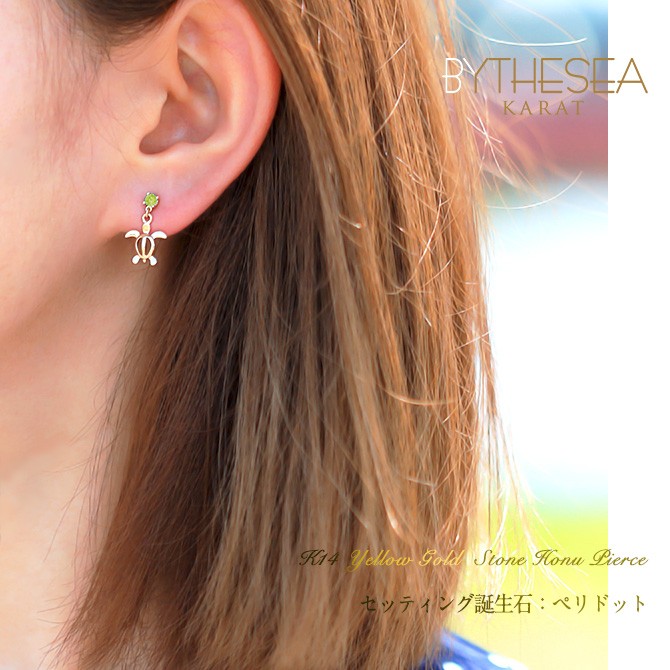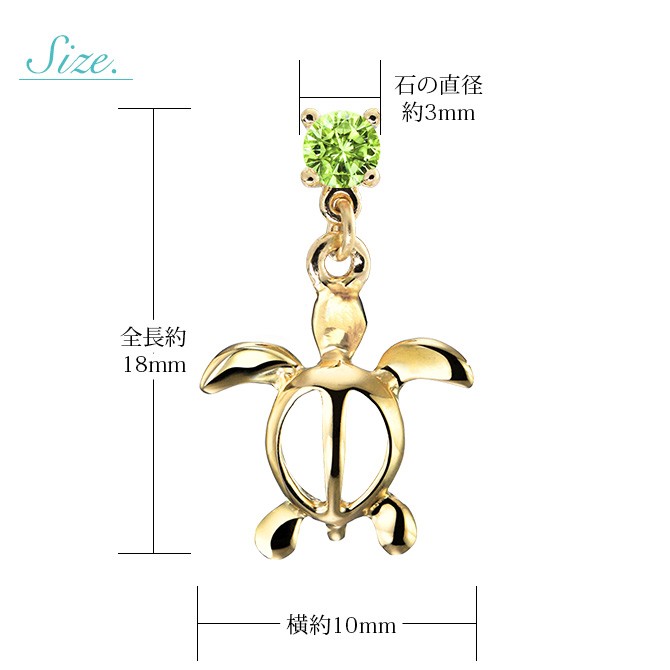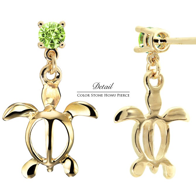 ハワイアンジュエリー 8月誕生石 ペリドット ホヌ ピアス