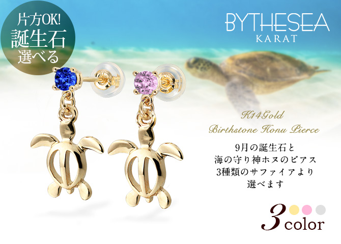 ハワイアンジュエリー 9月誕生石 サファイア ホヌ ピアス