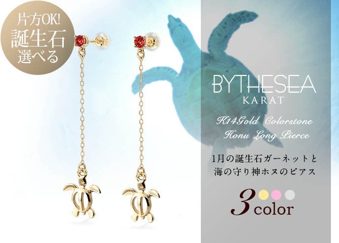 ハワイアンジュエリー 1月誕生石 ガーネット ホヌ ロングピアス
