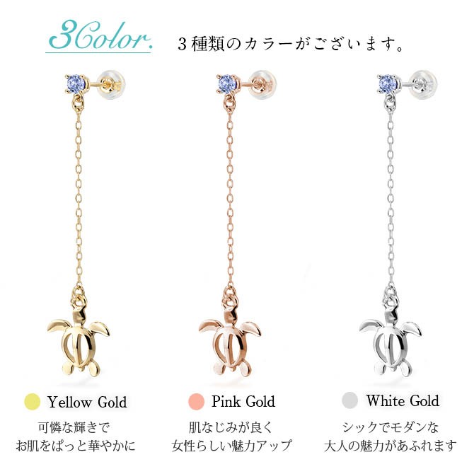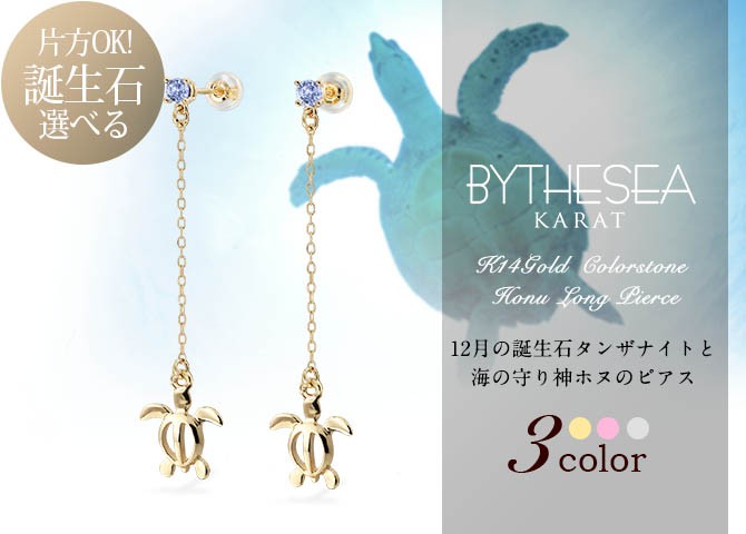 ハワイアンジュエリー 12月誕生石 タンザナイト ホヌ ロングピアス