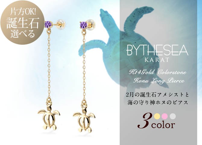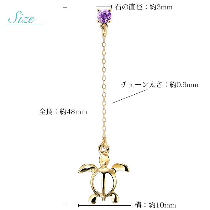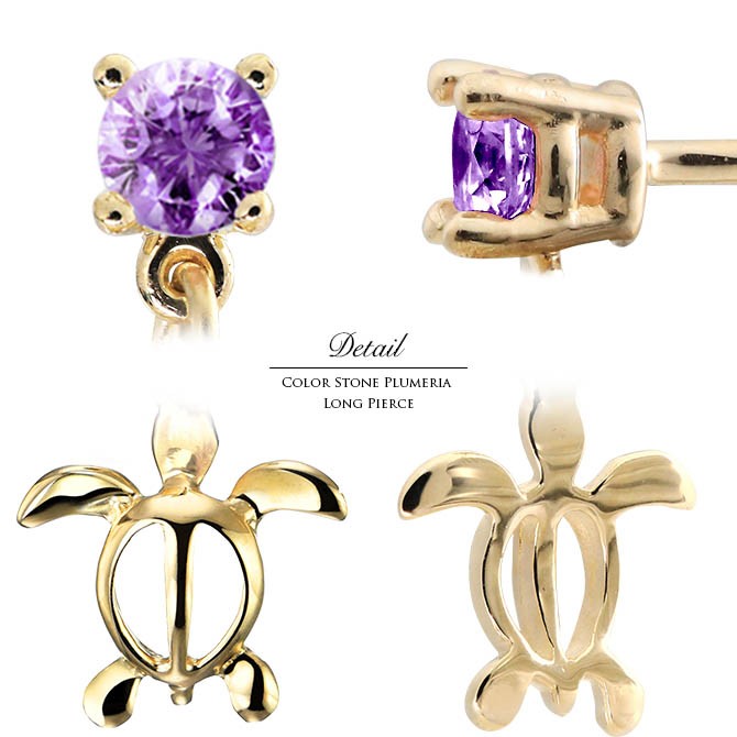 ハワイアンジュエリー 2月誕生石 アメシスト ホヌ ロングピアス