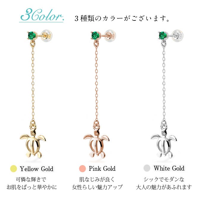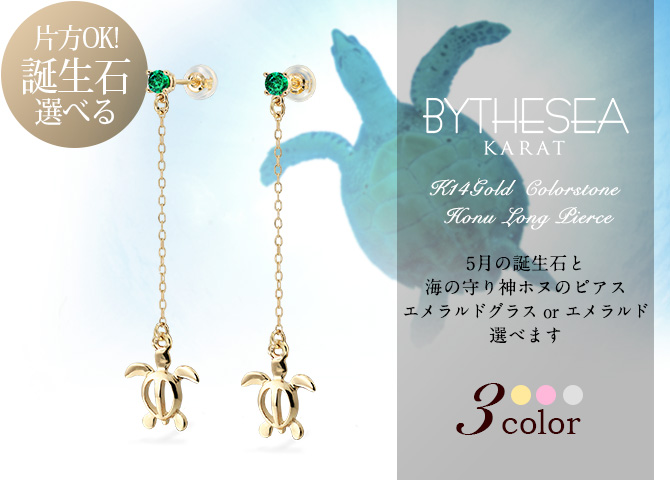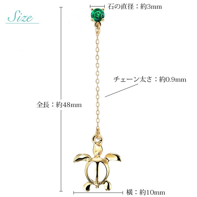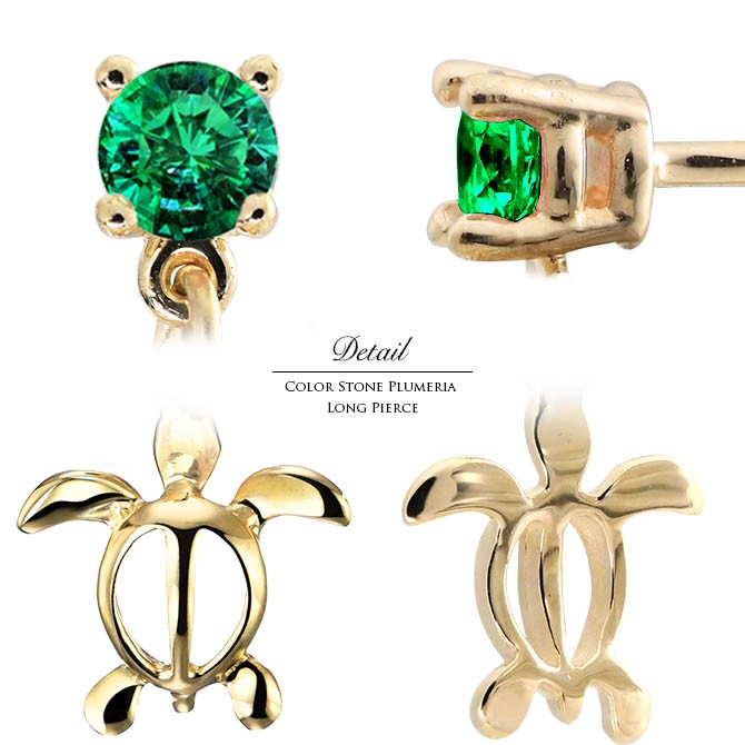 ハワイアンジュエリー 5月誕生石 エメラルド ホヌ ロングピアス