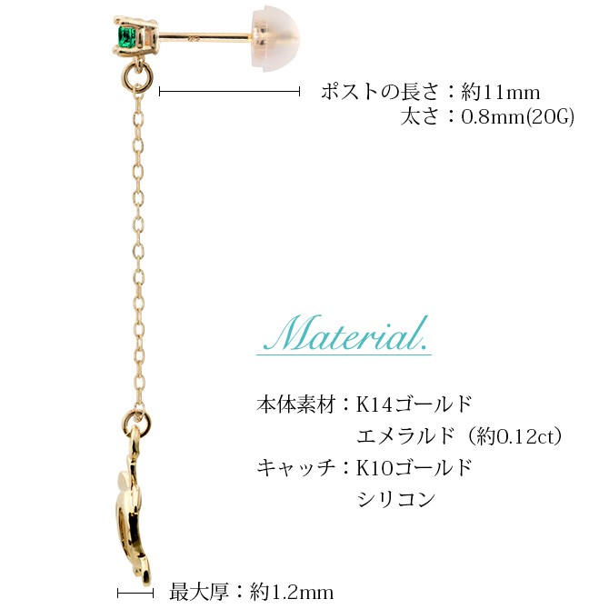 K14ゴールド/エメラルド:3mm(約0.12ct)またはエメラルドグラス