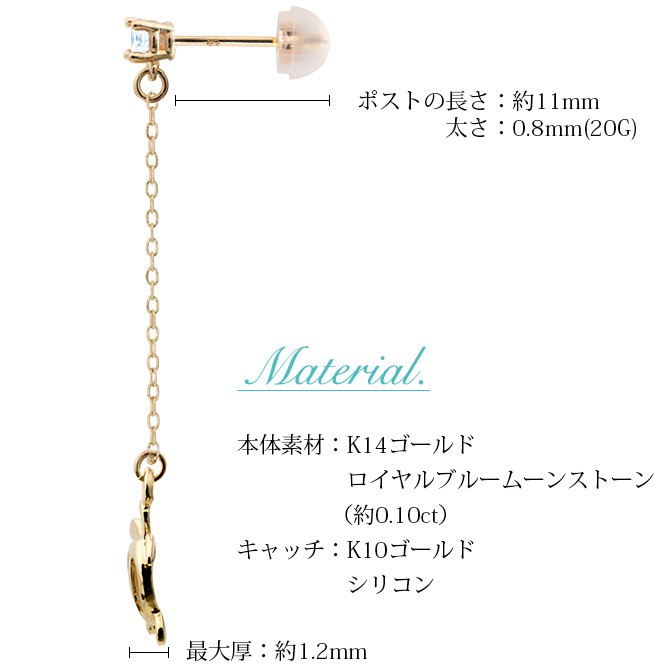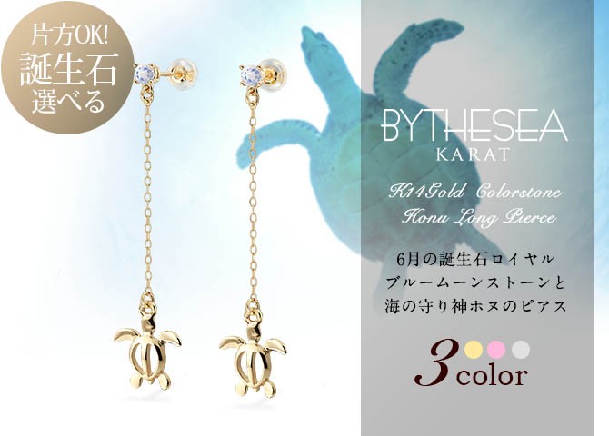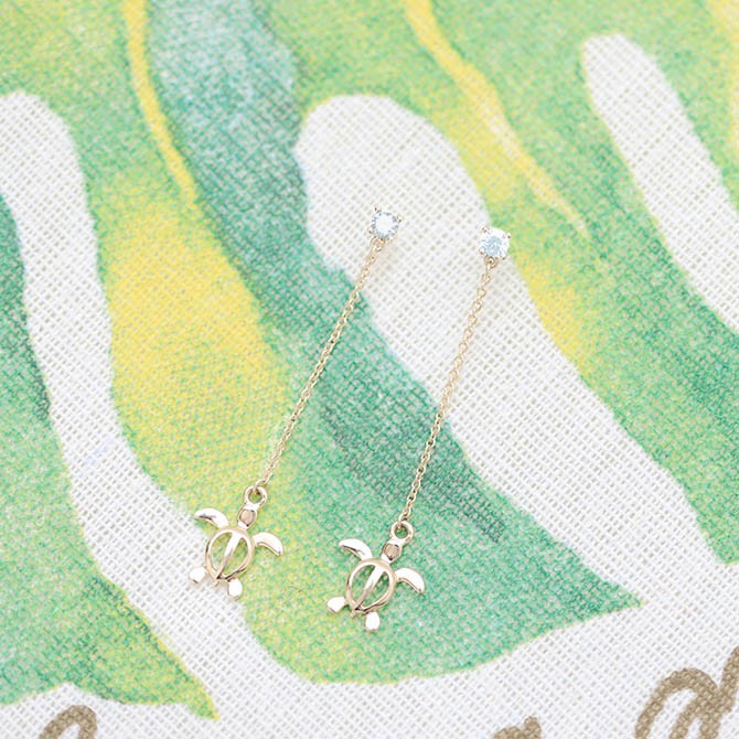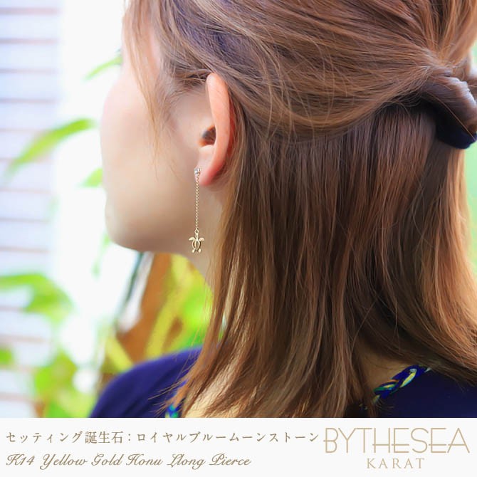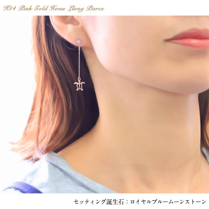 ハワイアンジュエリー 6月誕生石 ムーンストーン ホヌ ロングピアス