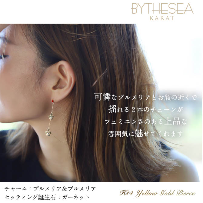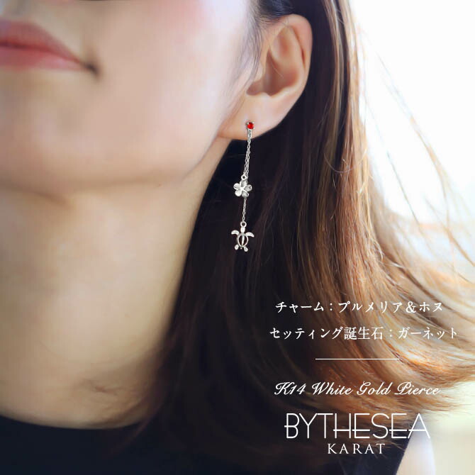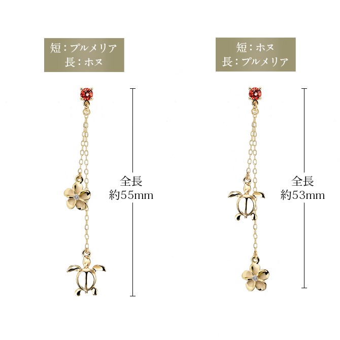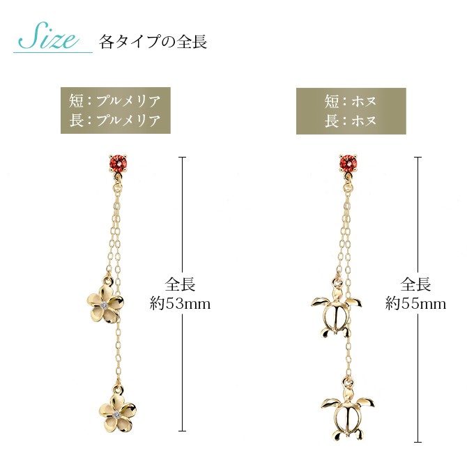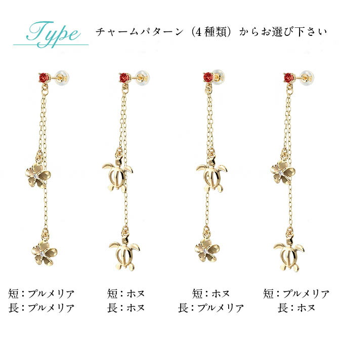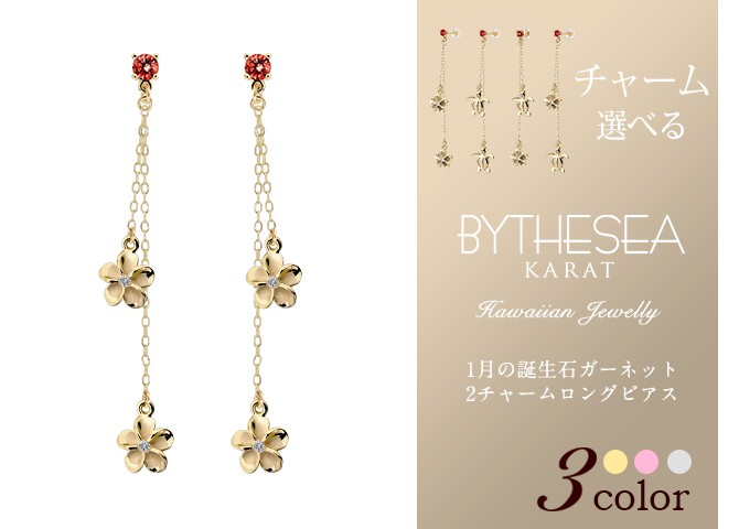 ハワイアンジュエリー 1月誕生石 ガーネット 2チャーム ロングピアス