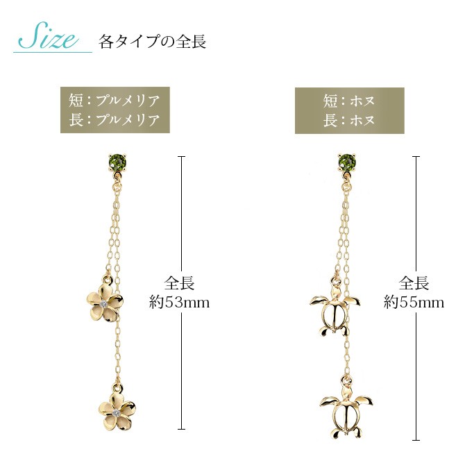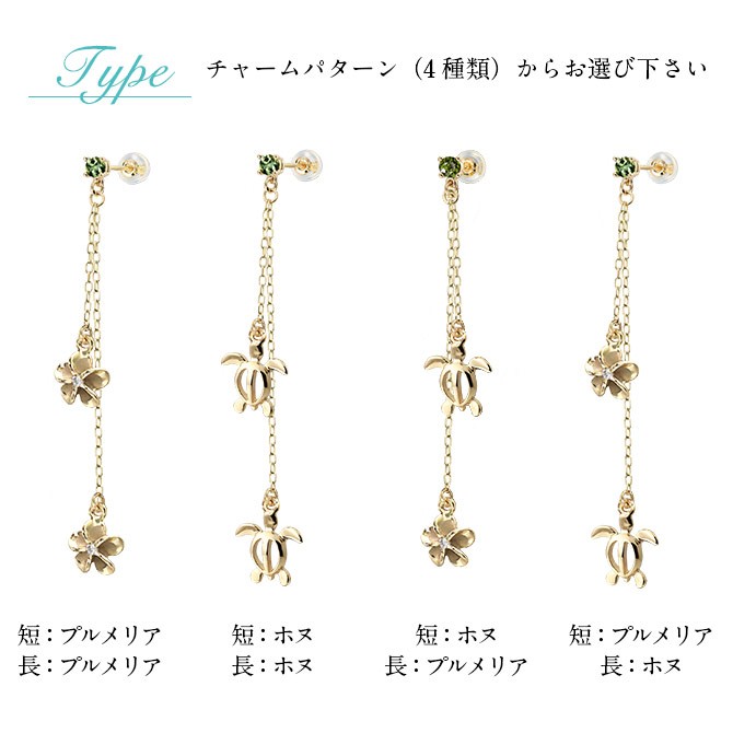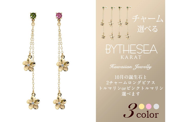 ハワイアンジュエリー 10月誕生石 トルマリン 2チャーム ロングピアス
