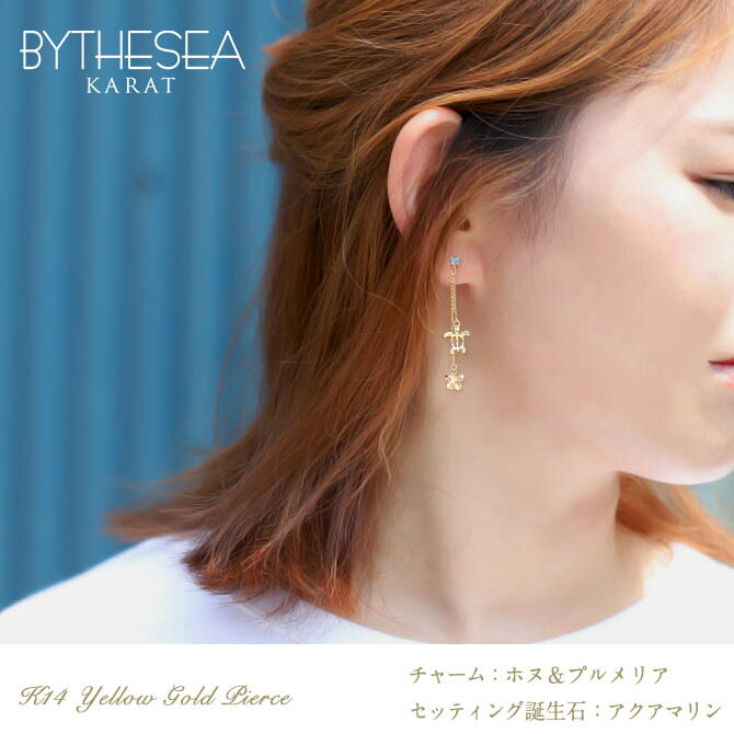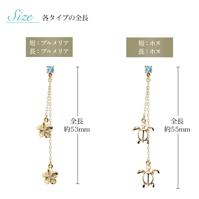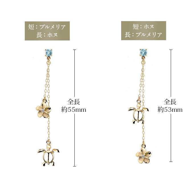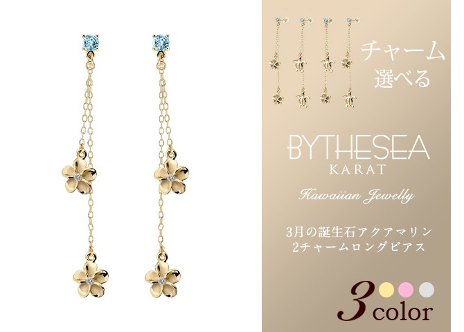ハワイアンジュエリー 3月誕生石 アクアマリン 2チャーム ロングピアス