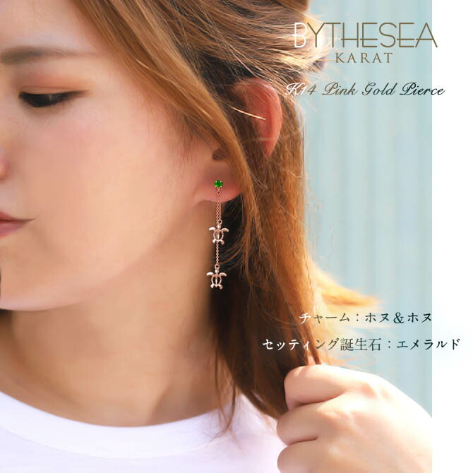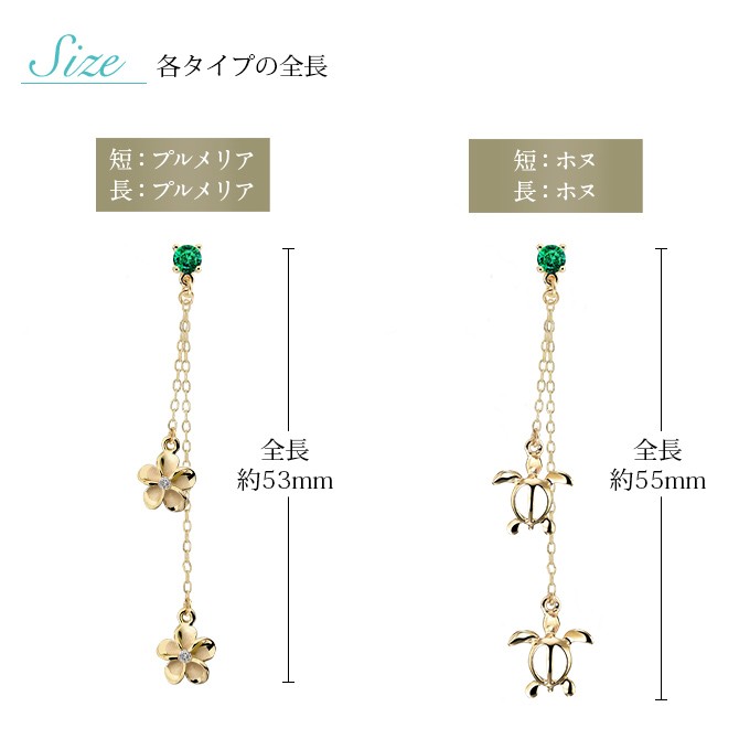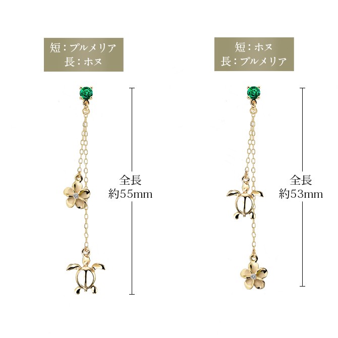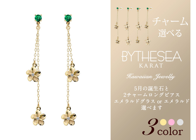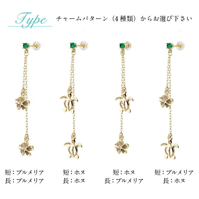 ハワイアンジュエリー 5月誕生石 エメラルド 2チャーム ロングピアス