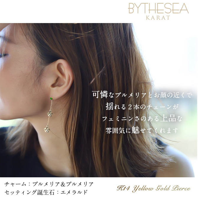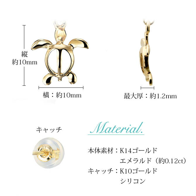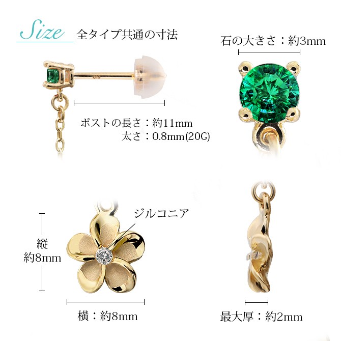 K14ゴールド/エメラルド:3mm(約0.12ct)またはエメラルドグラス