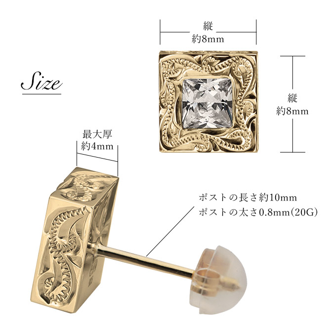 側面にもスクロール柄が彫られたゴージャスなスクエアピアス