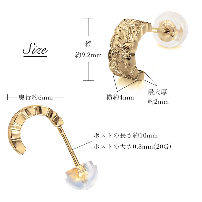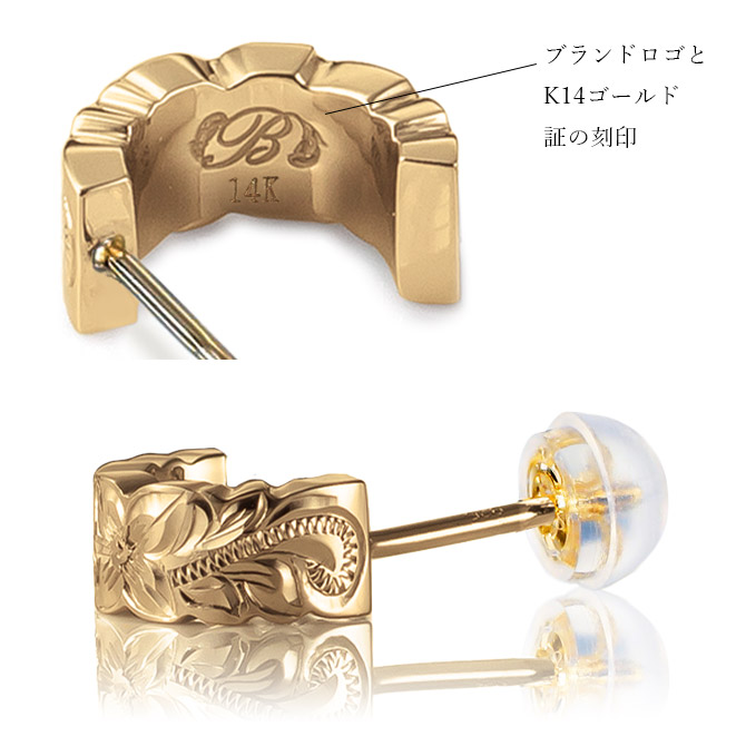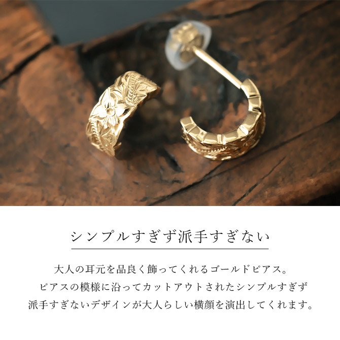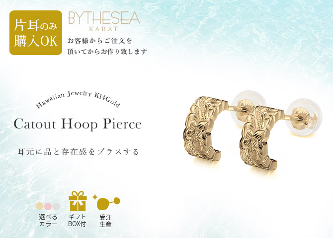 ハワイアンジュエリー K14ゴールド フープ ピアス