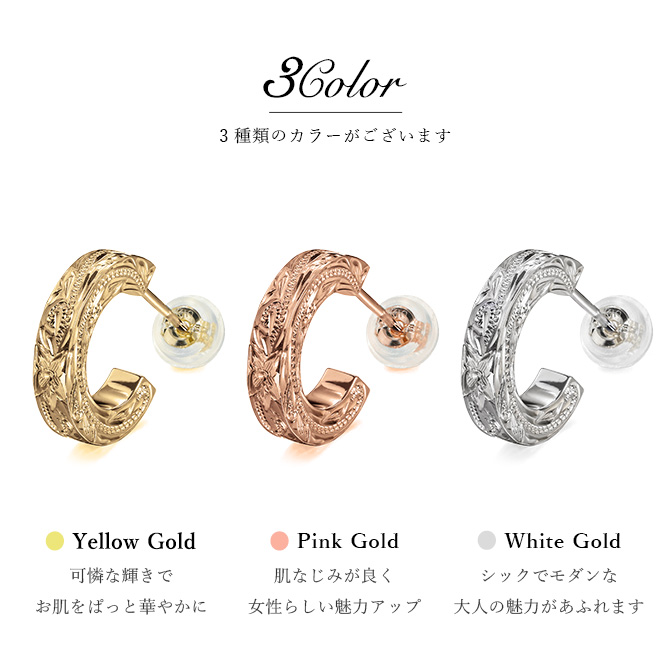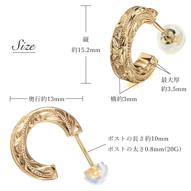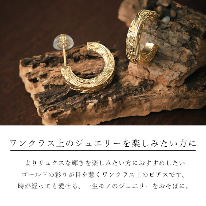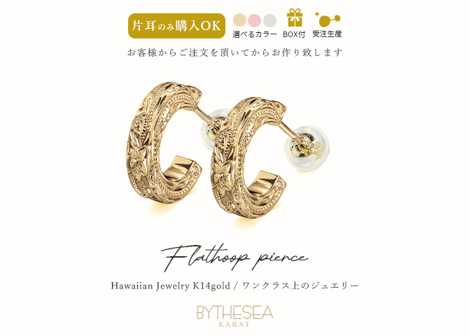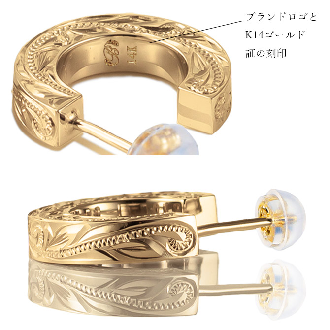 ハワイアンジュエリー K14ゴールド フープ ピアス