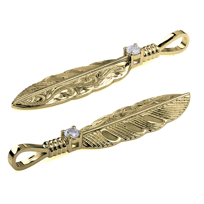 ハワイアンジュエリー カラーストーン フェザー K14 ヴァージンネックレス (チェーン別売)
