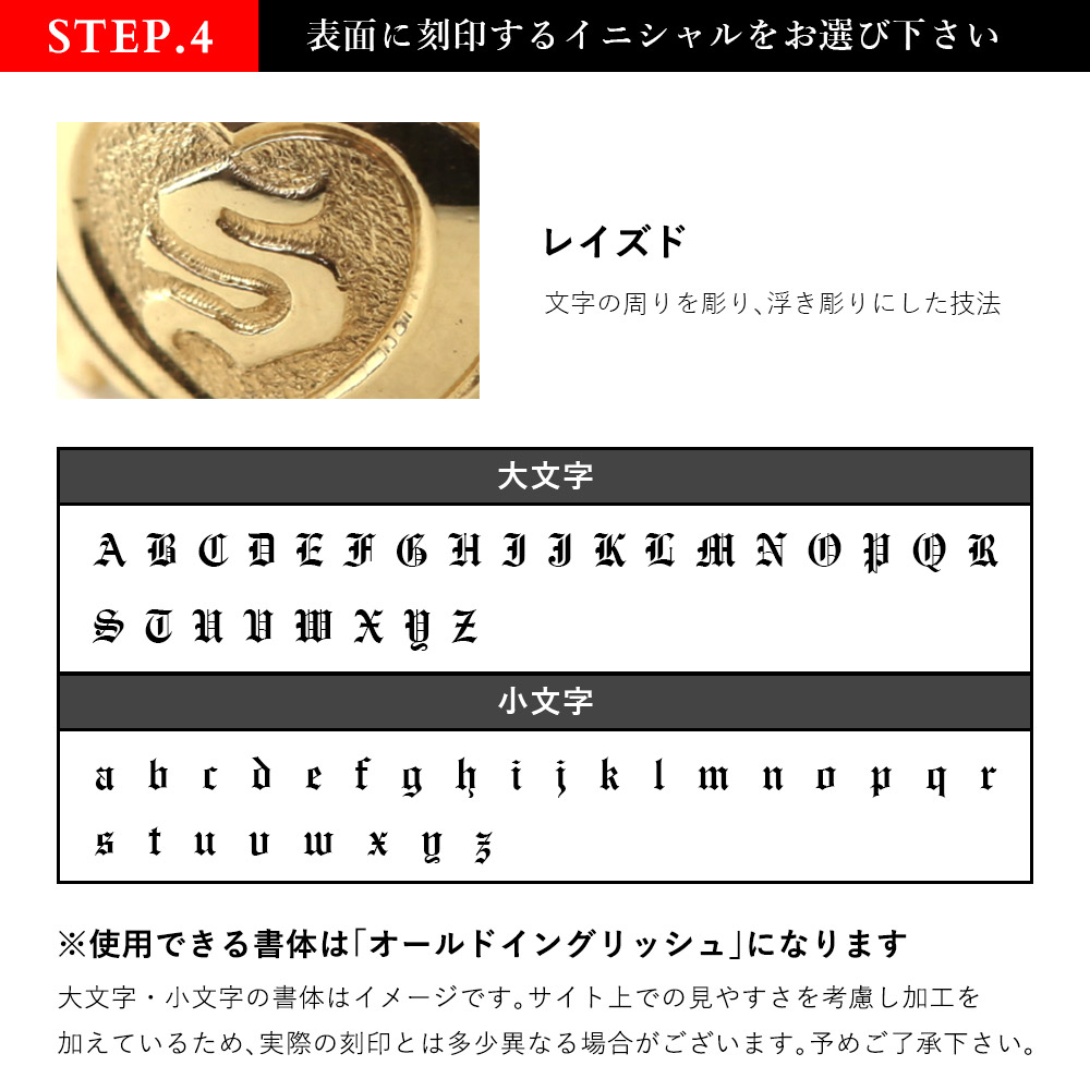 刻印可能文字数:表側:1文字(書体オールドイングリッシュのみ)