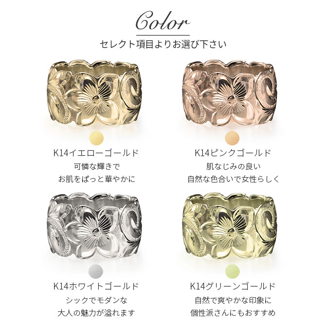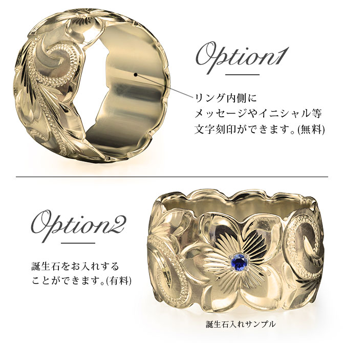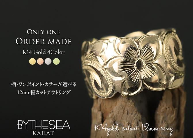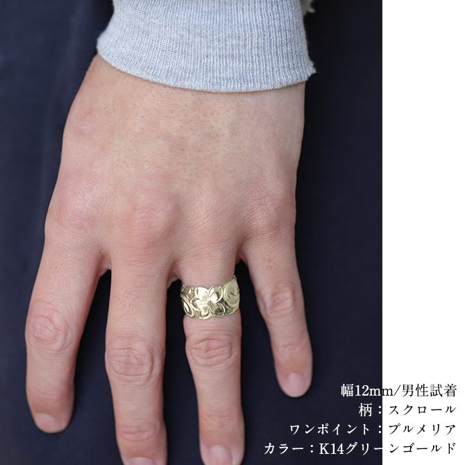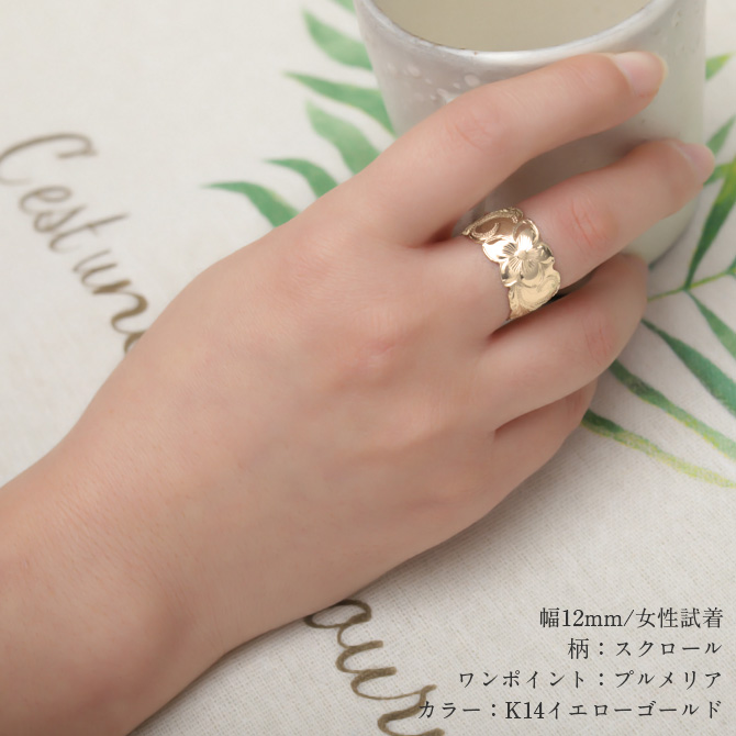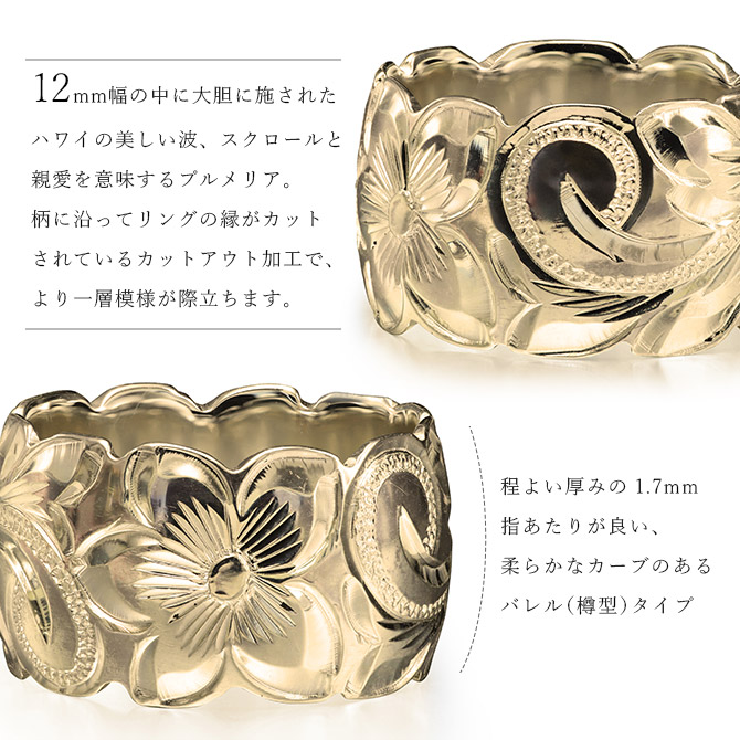 約12mm幅の中に大胆に施されたハワイの美しい波スクロールとプルメリア。