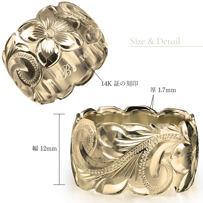 柄に沿ってリングの縁がカット加工されており、より一層模様が際立ちます。