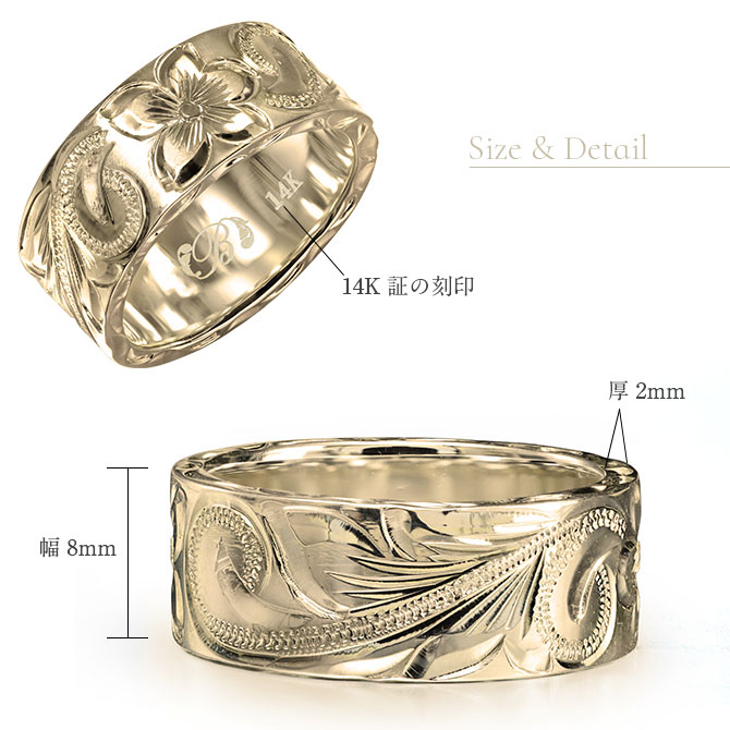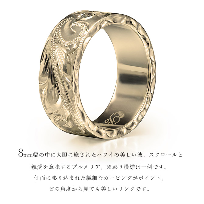 約8mm幅の中に大胆に施されたハワイアン模様