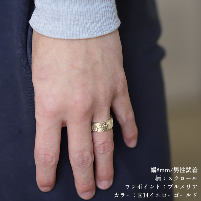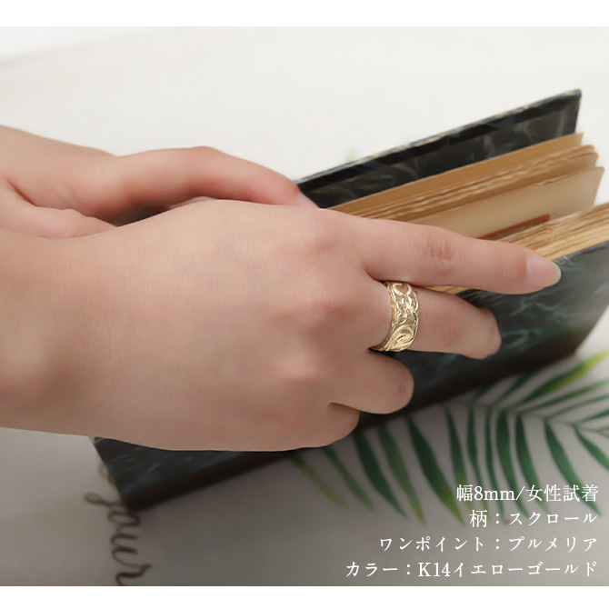 K14ゴールド フラット 幅約8mm 厚み2mm スクロール リング