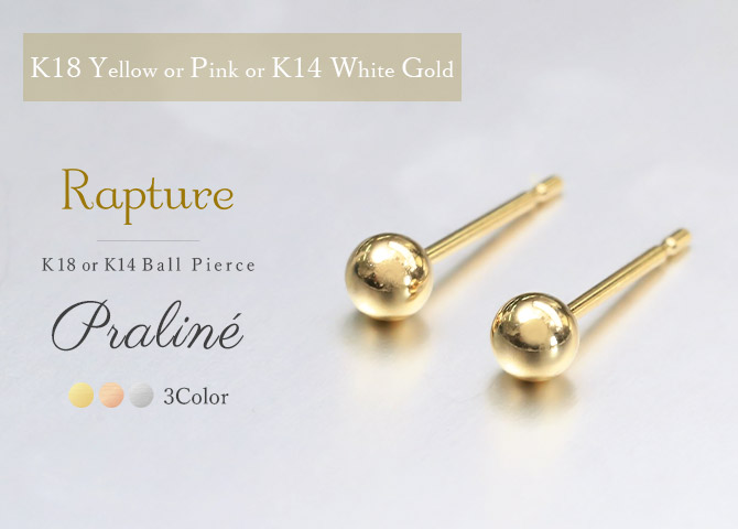 【praline/プラリネ】ゴールド スフィア ピアス 18KYG 18KPG 14KWG