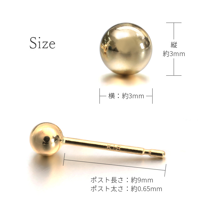 直径:約3mm/厚:約3mm/ポスト長さ:約0.9mm/ポスト太さ:約0.65mm
