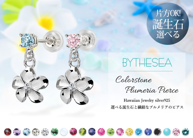 ハワイアンジュエリー カラーストーン プルメリア ピアス Sサイズ