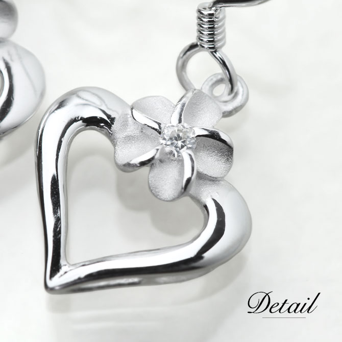 小ぶりなプルメリアの細部にも贅沢なジルコニアが。ハートモチーフでエレガントに