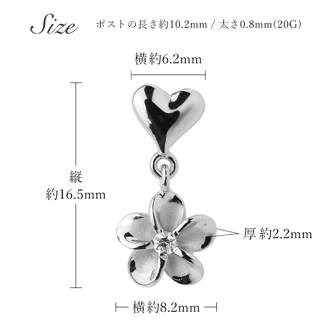 ポストの長さ約10.2mm ポスト太さ:0.8mm(20G)
