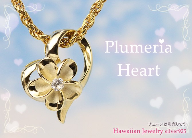 ハワイアンジュエリー プルメリア ハート ペンダントトップ(チェーン別売)